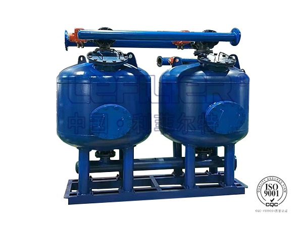 自动反冲洗砂石过滤器又叫浅层砂过滤器,是由两个标准高速砂缸单元组成的水处理设备,它内部设有独特的布水器和集水器,拥有独特的双向自动冲洗阀,可实现在正常系统运行中两个标准高速砂缸逐个单独的反冲洗,全自动程序控制,操作方便。