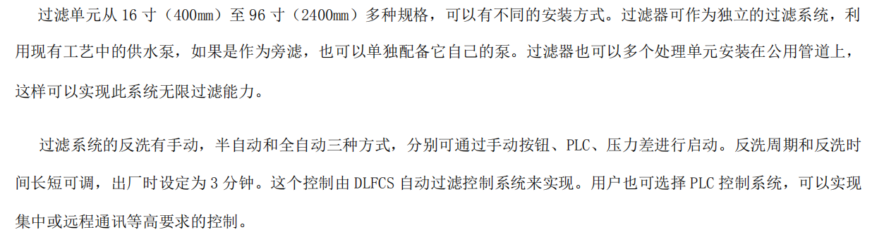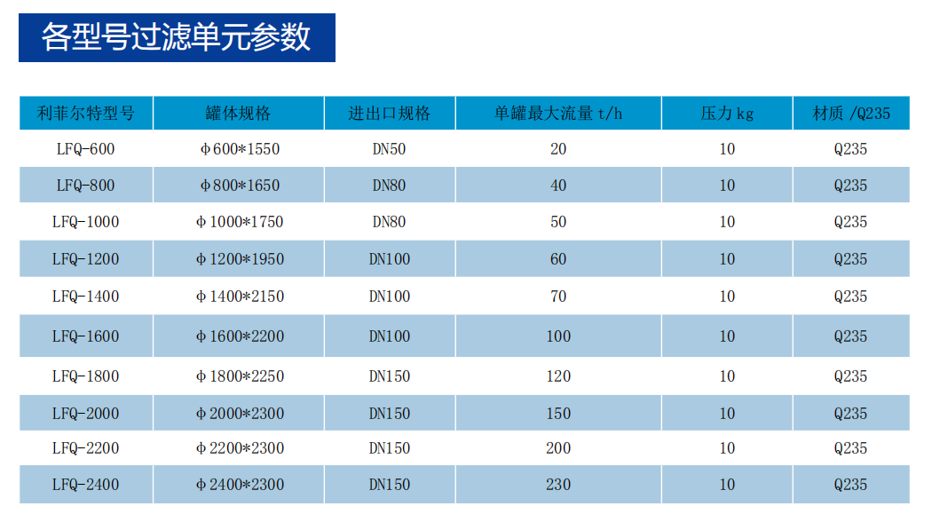 LFQ系列浅层砂过滤器系统参数