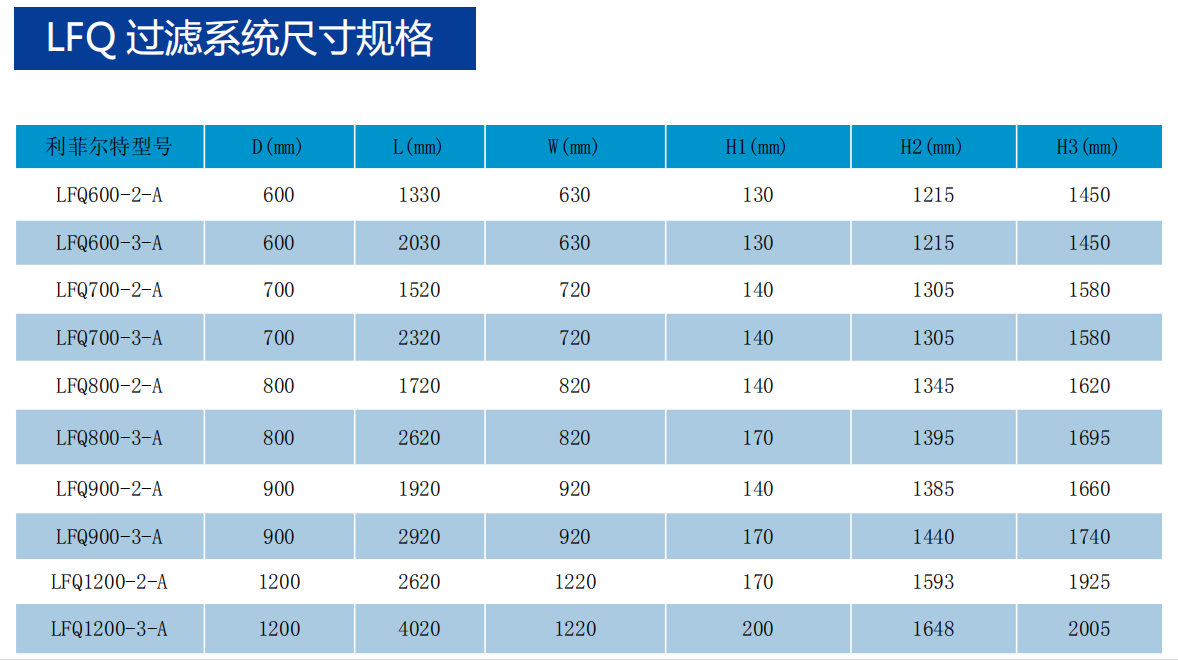 LFQ系列浅层砂过滤器产品尺寸图